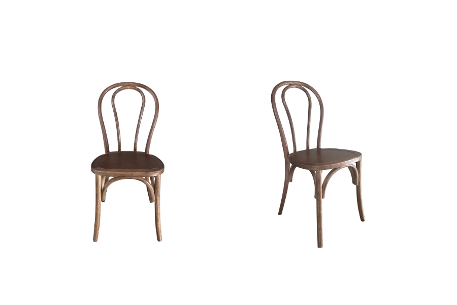 The Bentwood Antique Chair is a true classic, offering timeless elegance with a softly aged finish. Featuring the iconic bentwood curves, this chair brings character and warmth to any event while maintaining a refined, understated presence.